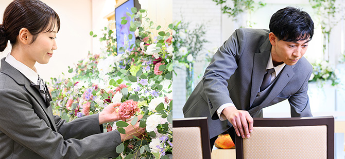 お寺様の都合や火葬場、式場の空き状況などを確認した上で決定いたします。もちろん、ご家族様の意向もありますので、スタッフに申し付けていただき、調整させていただきます。