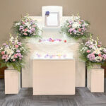 花祭壇は可能でございます。オプションのメニューになりますが、一般的に使用されている白木祭壇に換えて花祭壇にすることが可能でございます。